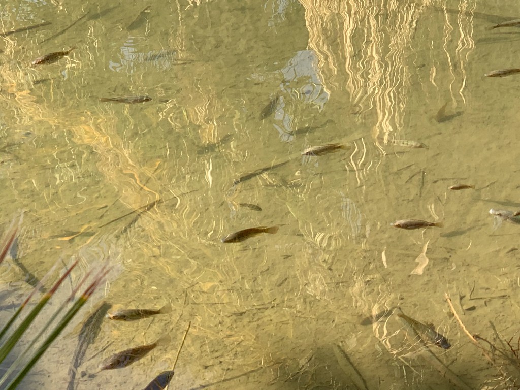 A short walk across a hot and dusty parking leads to the shadowed entrance of the oasis. After the heat of the desert sun, the sudden shade cools your skin. Under the canopy of palms, a small stream runs by the walking path. If you look hard, you will see tiny, almost transparent pupfish. At the edges of the running water, brackish water adds a pungent tang to the soft breeze that rustles the palms fronds.