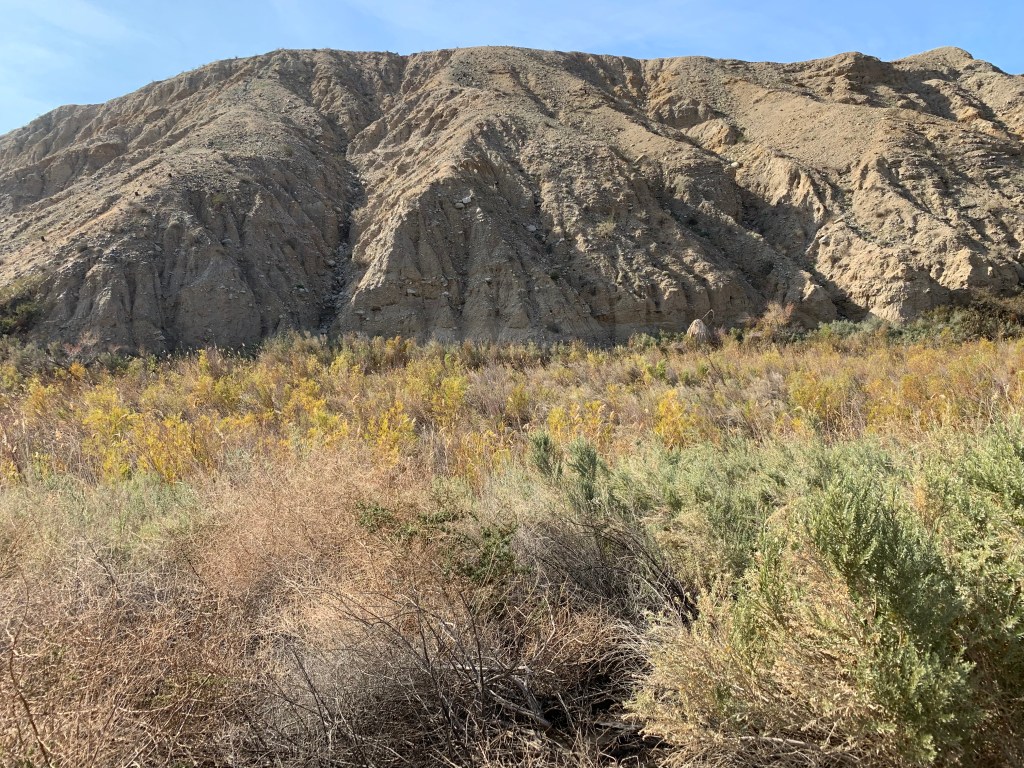 The oasis trail leads out onto the flat desert floor. Here, yellow-flowered coreopsis, cacti, yucca, and brittlebush cover the sand. It is the land of the fringe-toed lizard, bighorn sheep, roadrunner, and other heat-loving creatures. On this trail the San Andreas Fault looms to the left, a jagged, somewhat ominous knife-edged outcropping. But beyond the fault surrounding the valley, mountains ranges and hills define the horizon. The San Jacinto Mountains are purple, craggy, and topped by snow. Faint pastel shades of peach, green, and lavender paint the tan undulating dunes of the Little San Bernardino range. The Santa Rosa Mountains, with the look of a prone Stegosaurus, are dark purple in the misty distance. Overhead, the cap of the clear blue sky and the golden sun float above the sere landscape. Peace. I raised my hands to the sky and took a deep breath, then two more. Letting my arms fall to my sides, I felt all the tension, anger, and fear leave me like toxic drops falling from my fingertips to be absorbed in the healing sand.